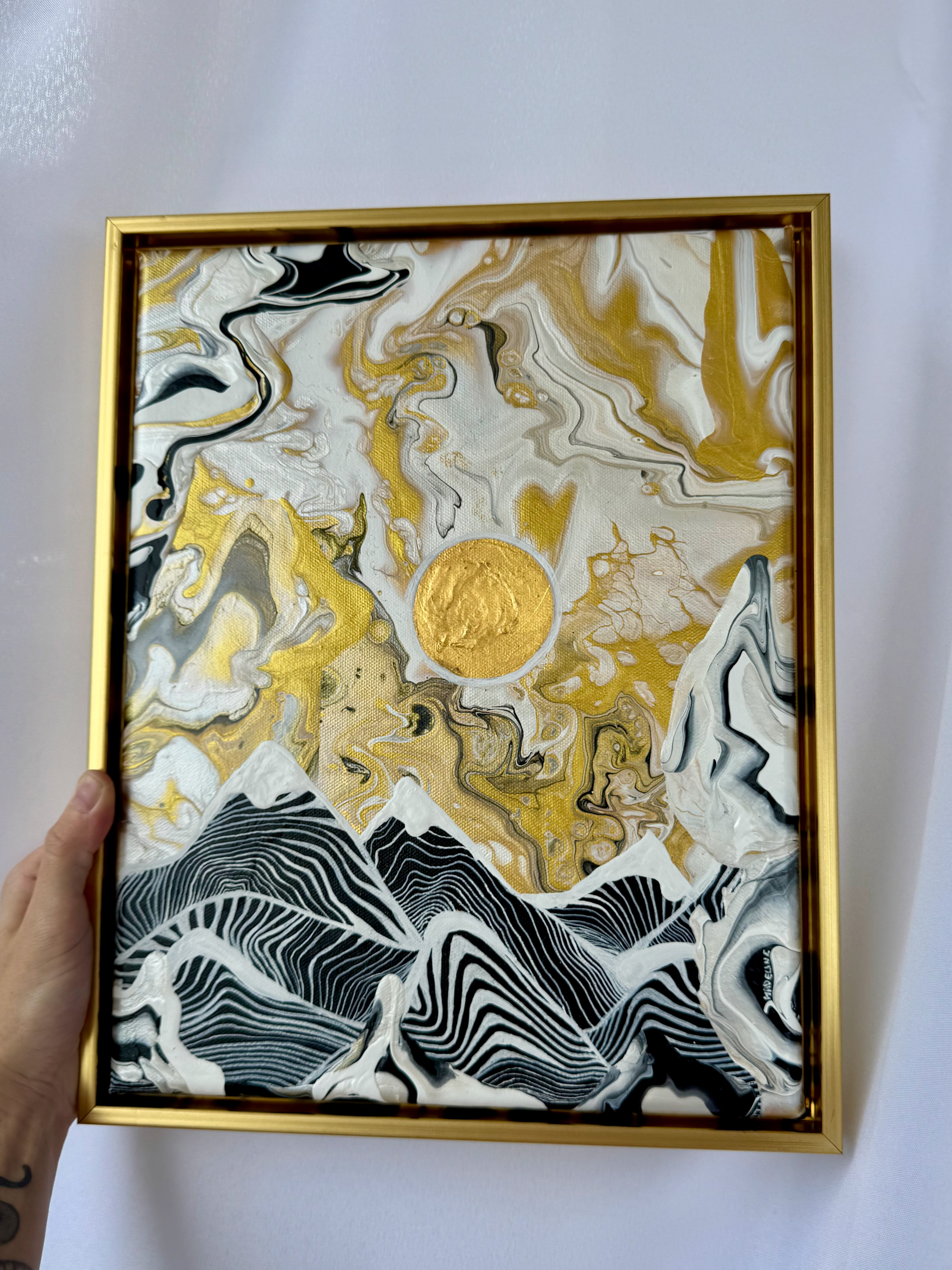 Duality, 2024, Acrylic Ink, Ink Pen, Gold Leaf, & Acrylic on 30x40 in. Canvas