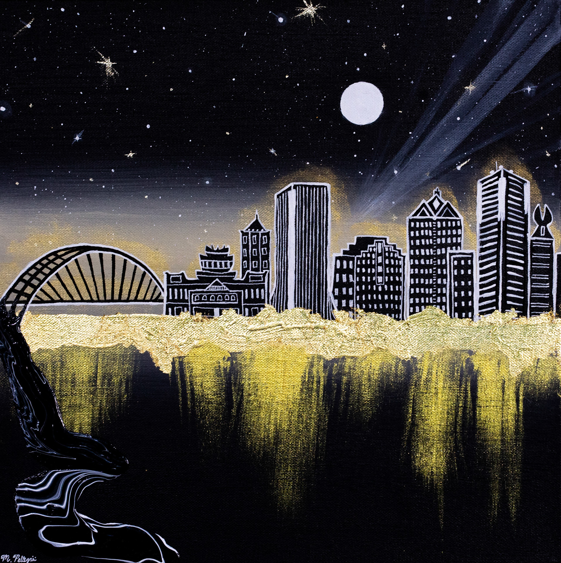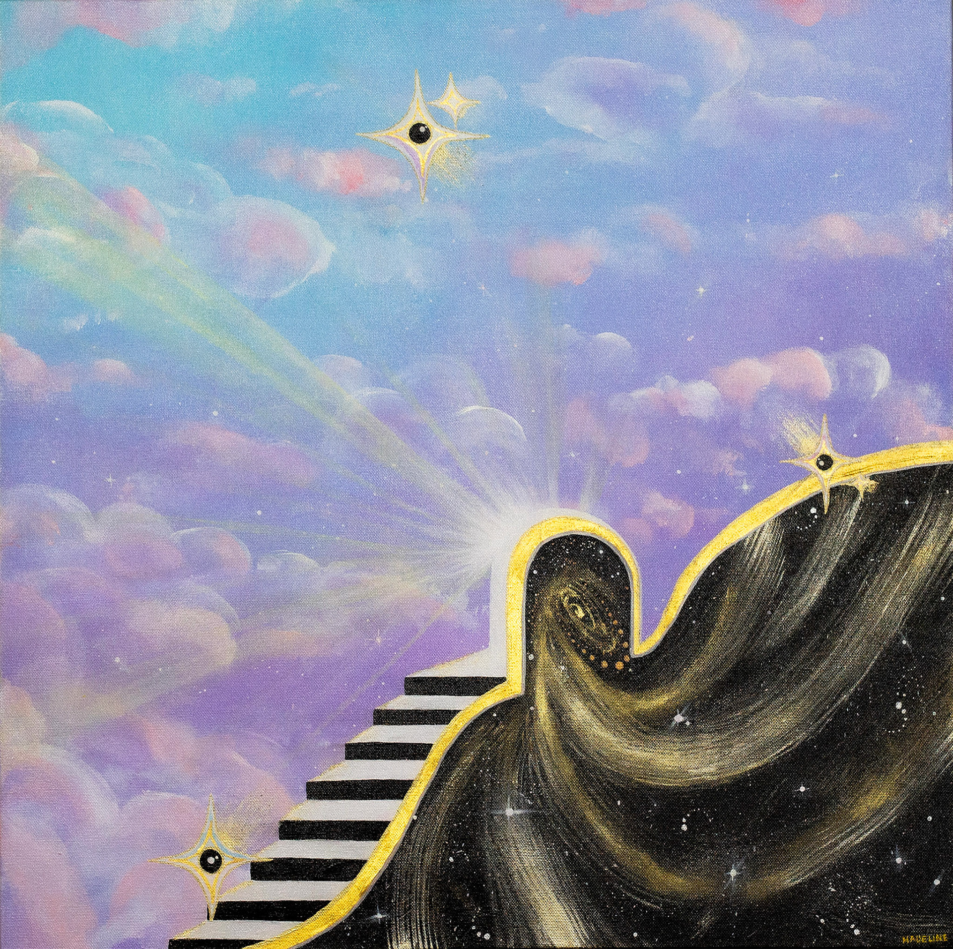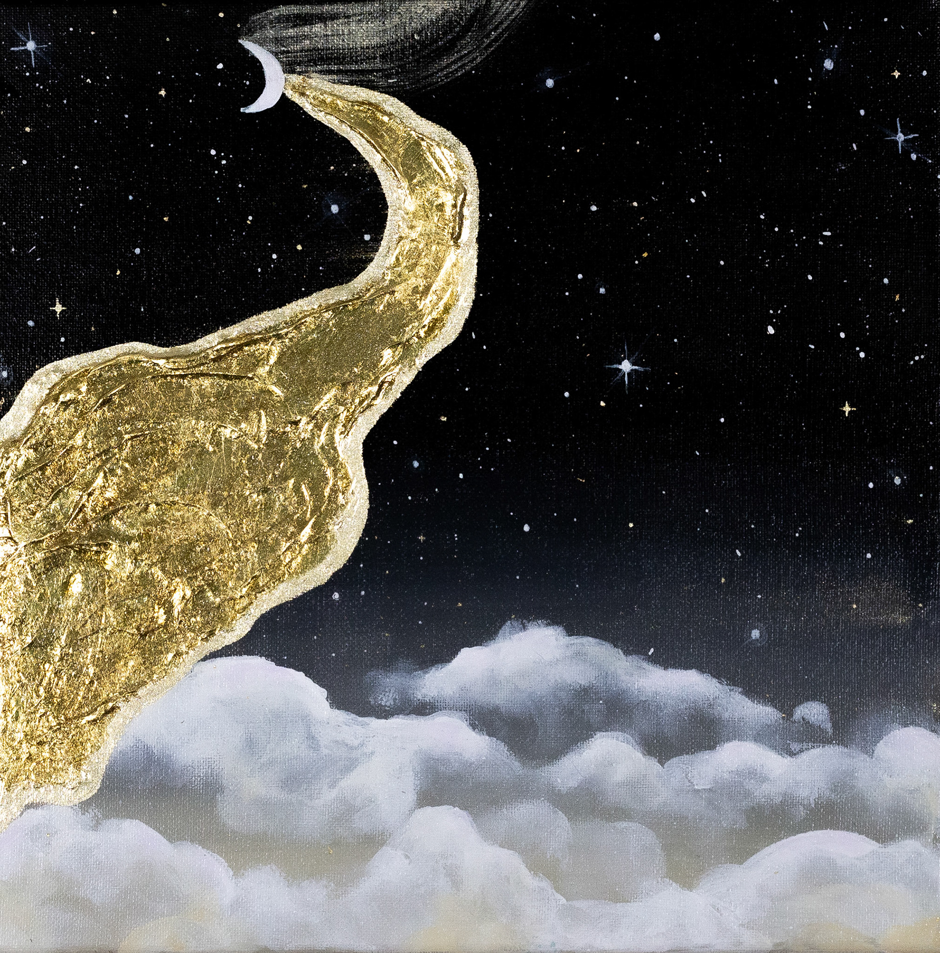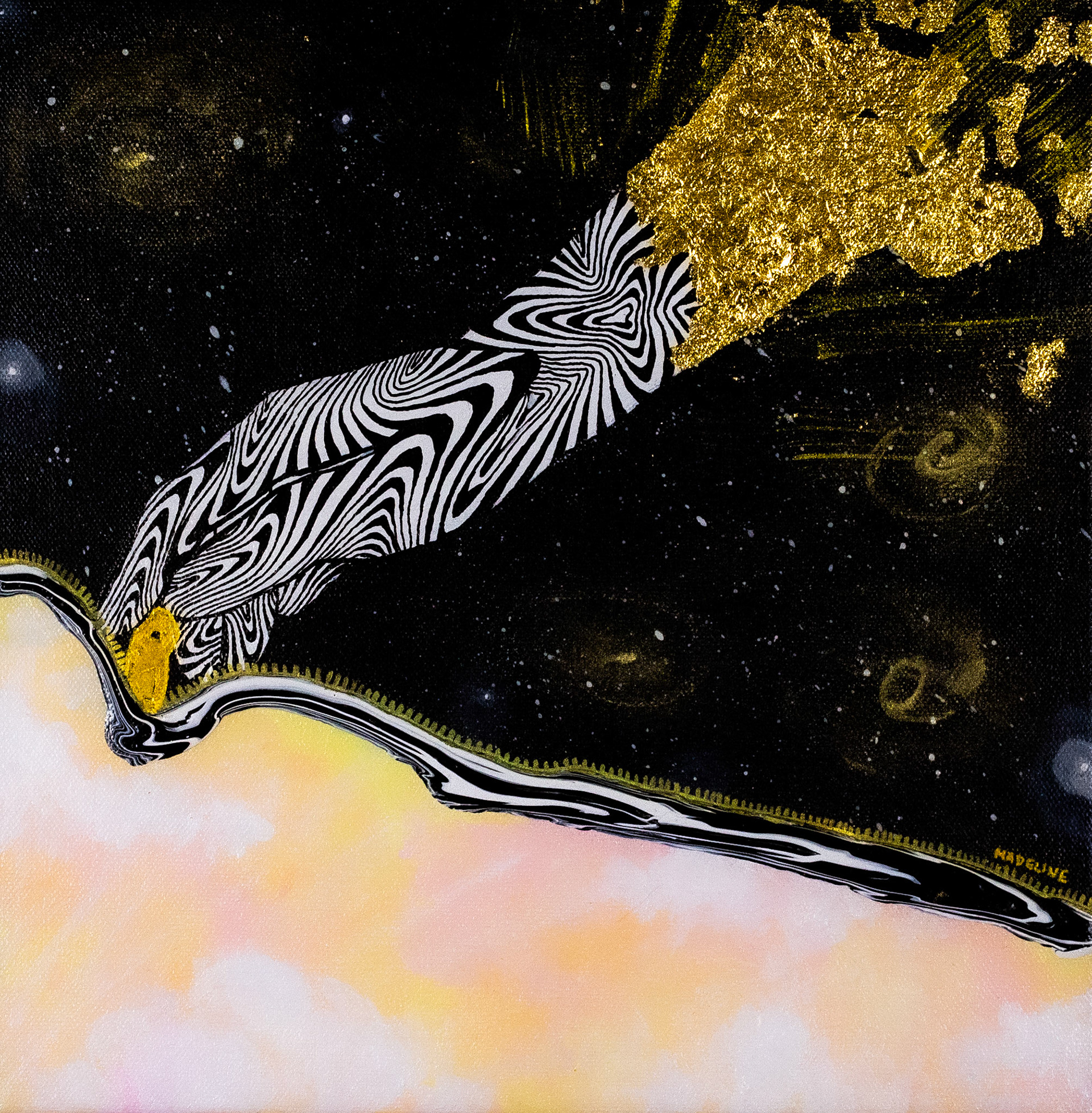Connection, 2024, Acrylic Ink, Ink Pen, Gold Leaf, Acrylic, and Watercolor on 24x24 in. Canvas