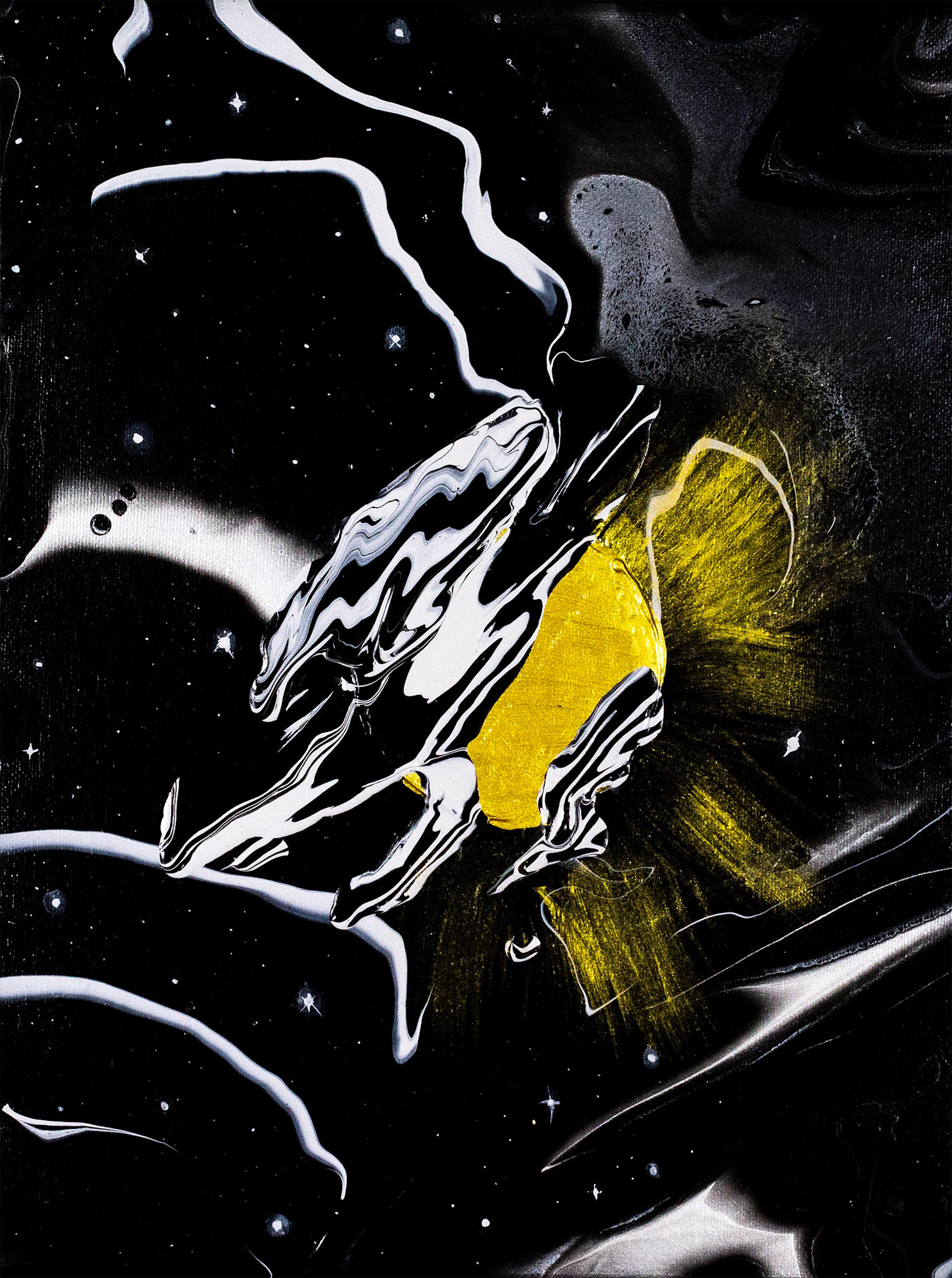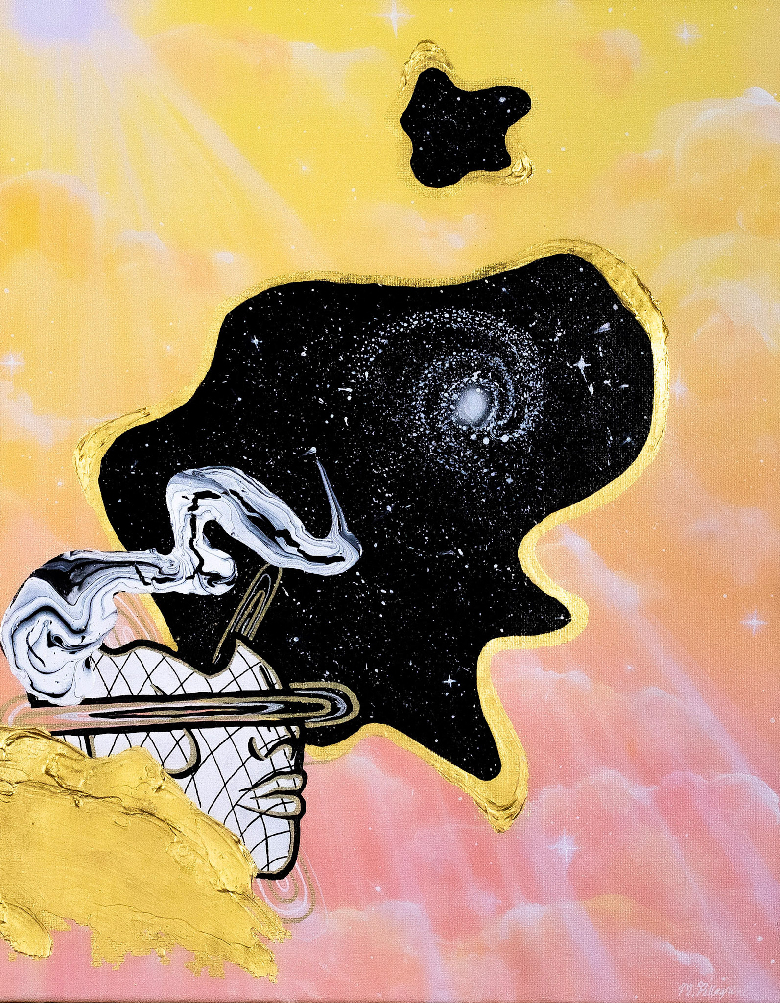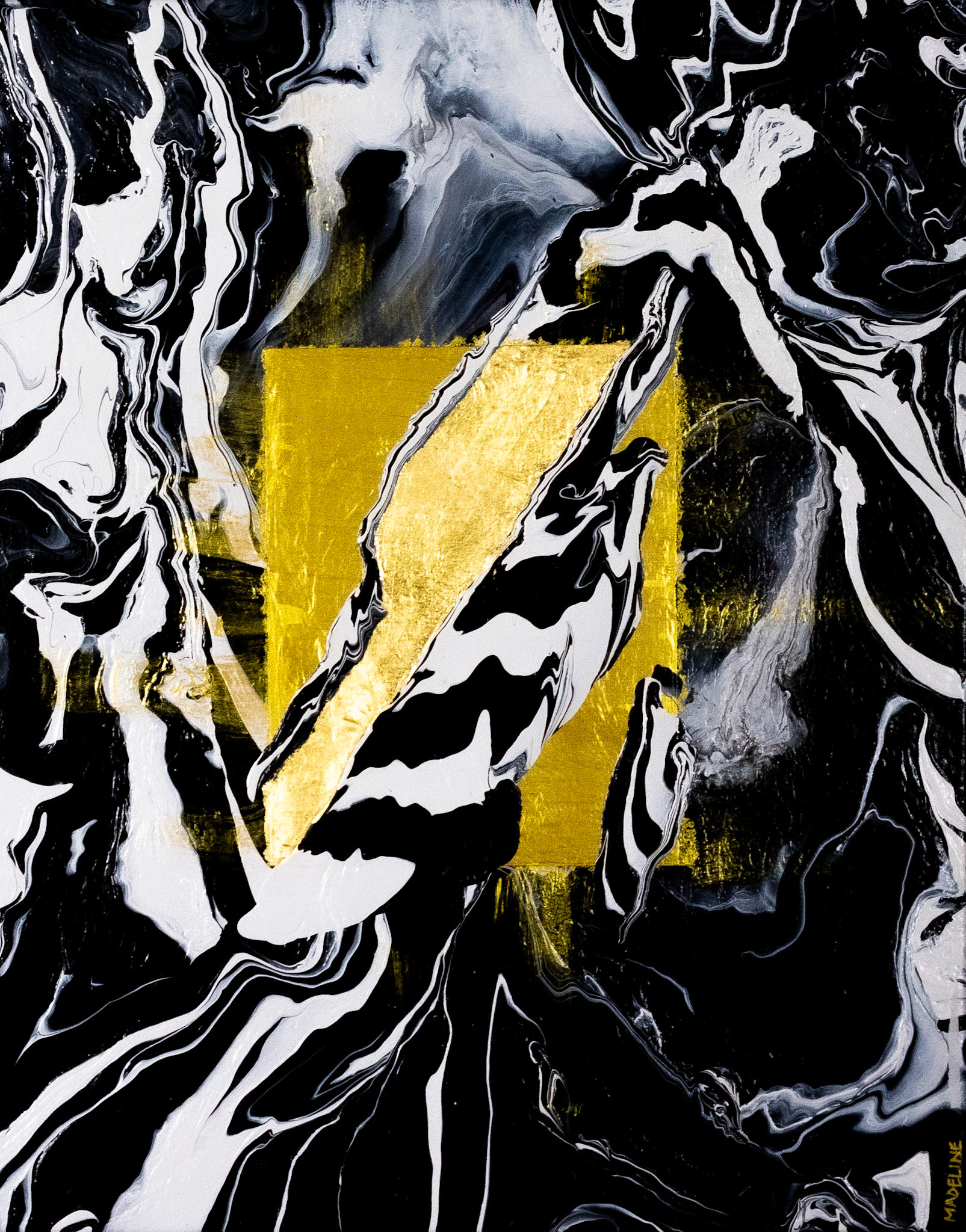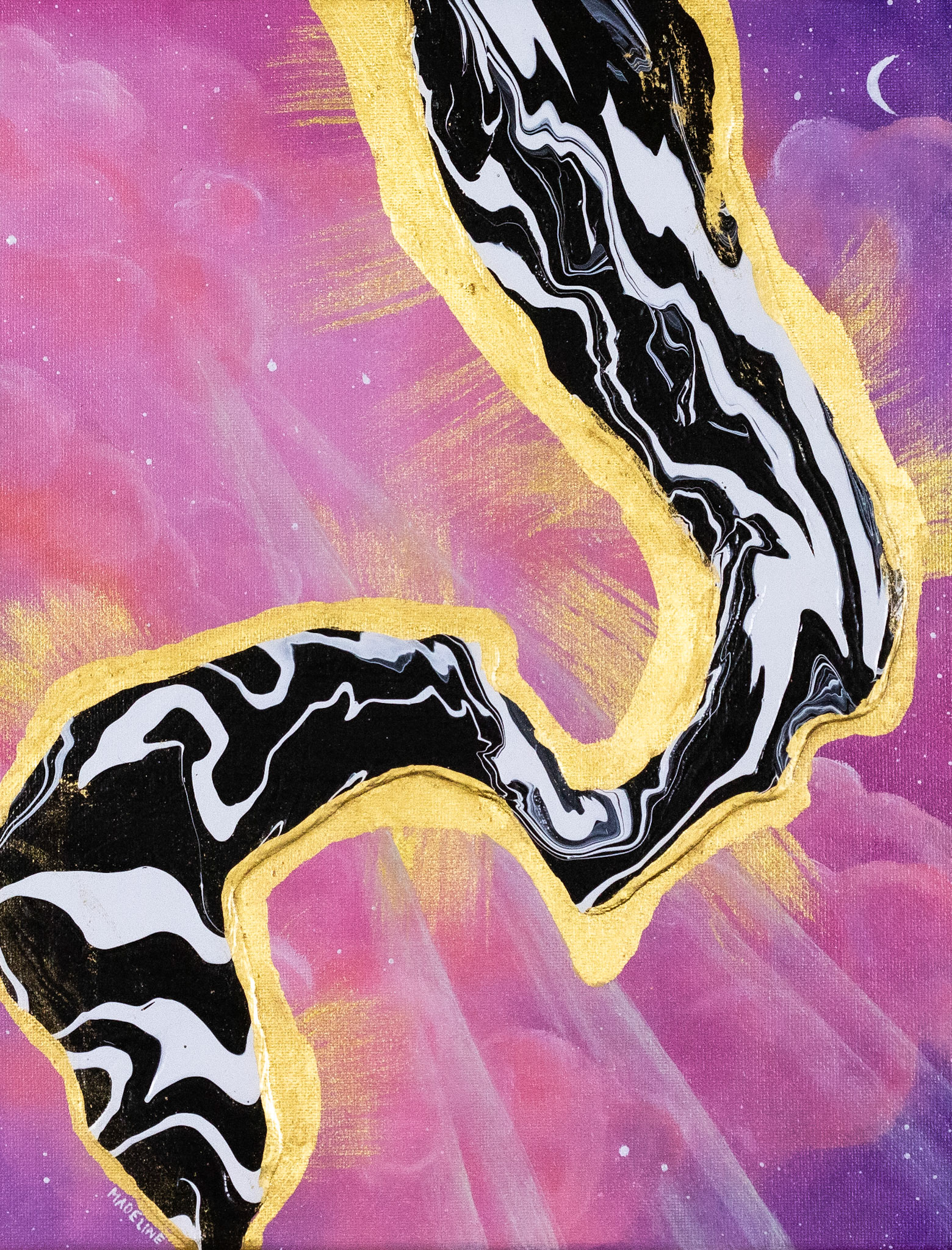 Duality, 2024, Acrylic Ink, Ink Pen, Gold Leaf, & Acrylic on 30x40 in. Canvas